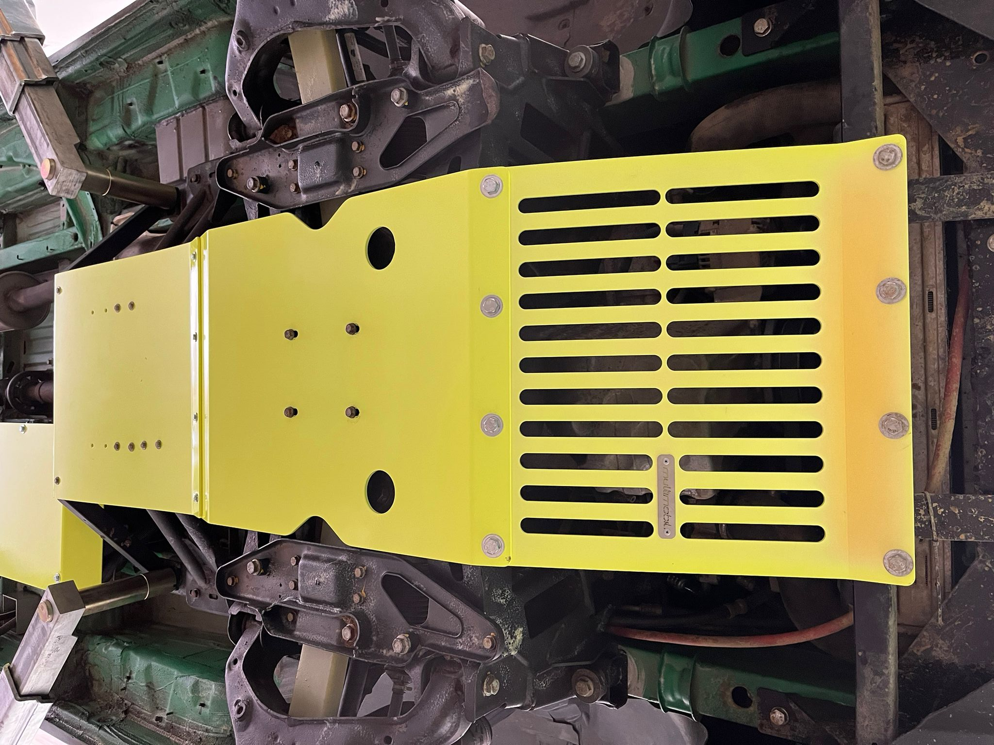 Die Schutzplatten werden in unserem Unternehmen hergestellt und sind bereits vielfach getestet. Sie bestehen aus Aluminium/Stahl und werden schwarz pulverbeschichtet.